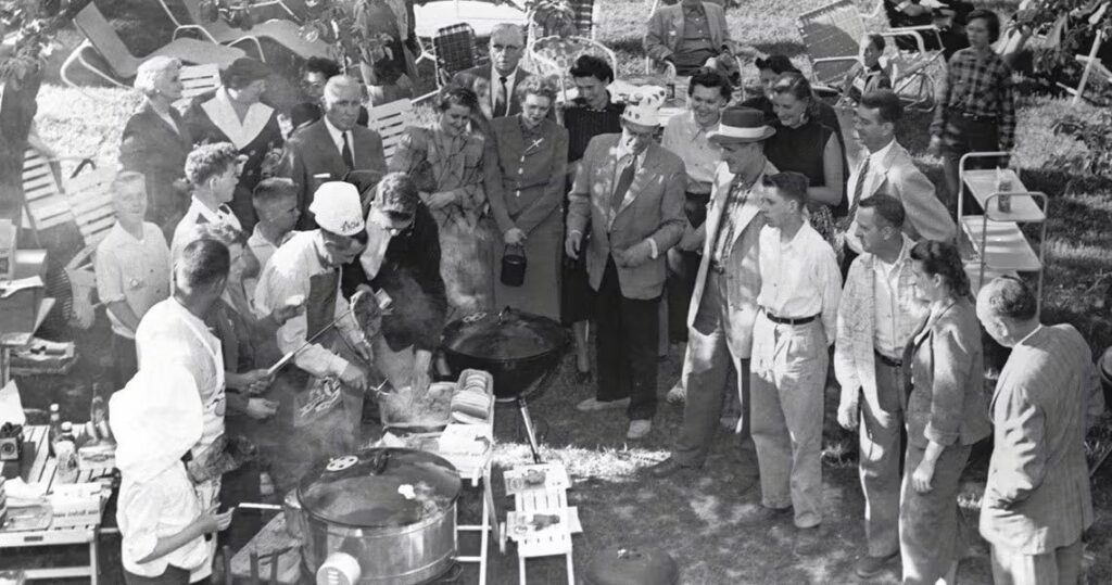 חלפו שלושה שבועות, יום הסנדוויצ'ים הגיע, וג'ורג' הגיע עם 8 ק"ג של בשר, חצי משאית מלאה בלחם, 227 ק"ג פחם ולא פחות מ-8 גרילי Weber Ranch Kettles. חגיגה של ממש. ג'ורג' הבעיר את הפחמים והסתכל על הר האוכל שעמד מולו, בחשש קל שהוא יביט בו גם בסוף היום.